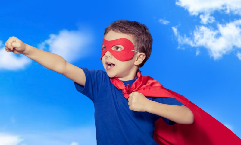 - In onze verkleedruimte kun je een superheldenpak en -cape uitzoeken.